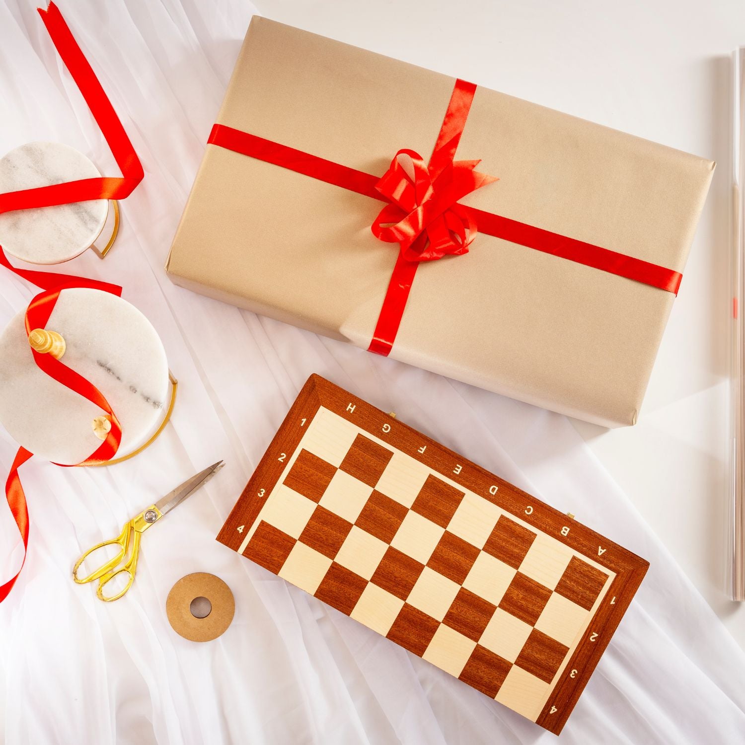 Échiquier No. 4 Crème – Acajou & Sycomore, Marqueterie avec Notation – 55 x 55 cm