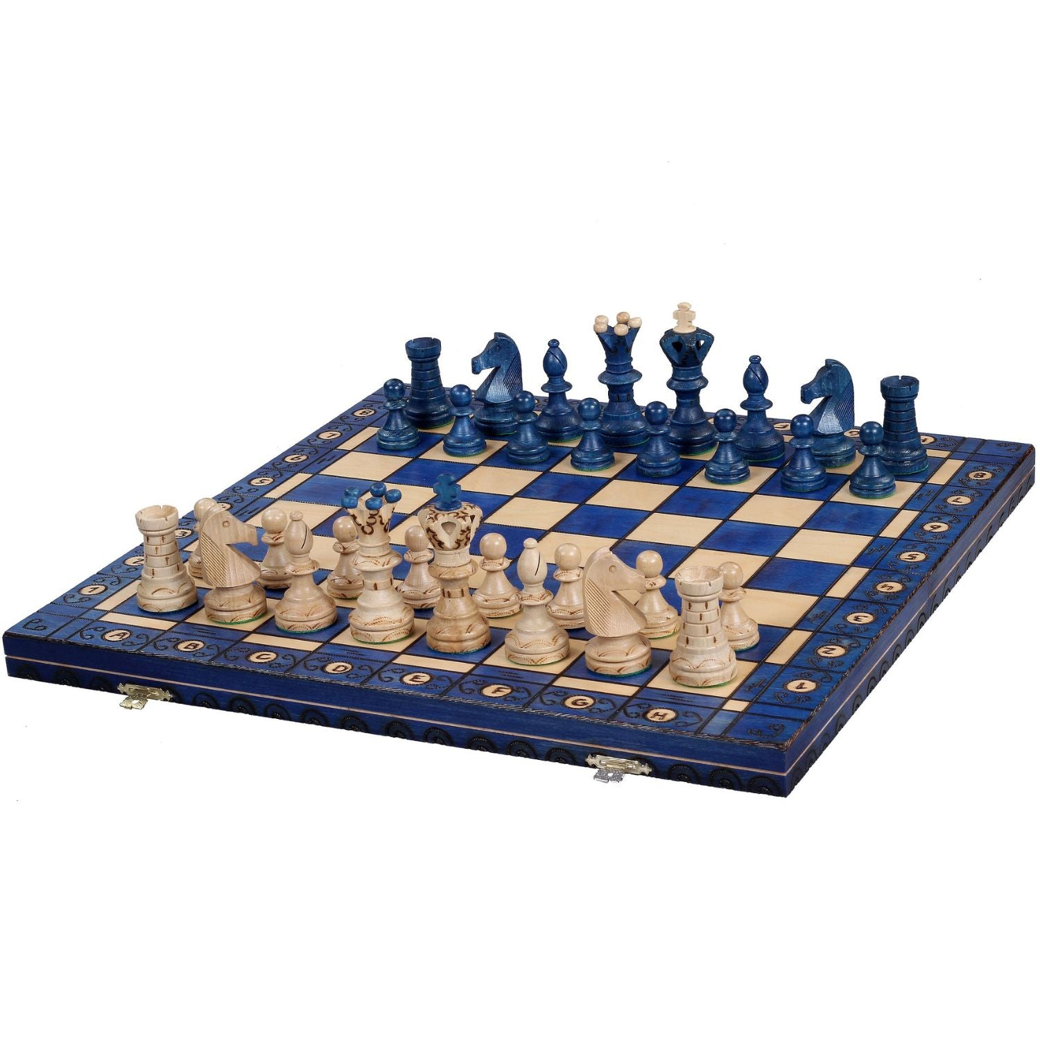 L’échiquier pliant, fabriqué en hêtre et bouleau, bénéficie d’une superbe finition brûlé artisanal et intègre un tiroir de rangement doublé permettant de conserver les pièces en toute sécurité. Sa fabrication robuste et son esthétique noble en font un véritable objet de décoration autant qu’un ensemble de jeu haut de gamme.