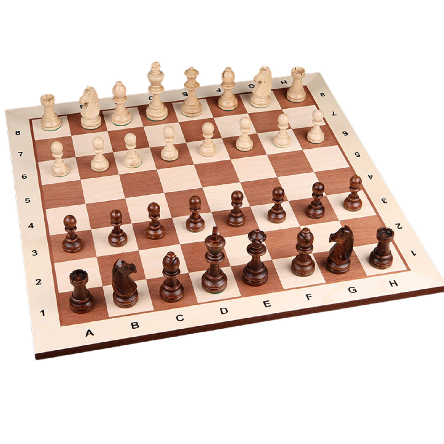 Avec ses cases de 58 mm, il est parfaitement adapté aux pièces de tournoi de grande taille, notamment celles dotées d’un roi de 9,8 cm. La présence d’une notation alphanumérique (chiffres et lettres en bordure) en fait un plateau idéal pour l’étude des parties, la compétition et l’enseignement.