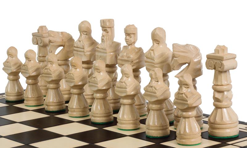 Réalisées en bois de Tilleul, ces pièces impressionnent par leur stature et leur détail. L’échiquier, à la finition soignée, met magnifiquement en valeur les contrastes de teintes entre les armées claires et sombres, sublimant chaque affrontement comme une bataille d’exception.