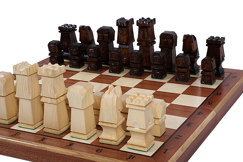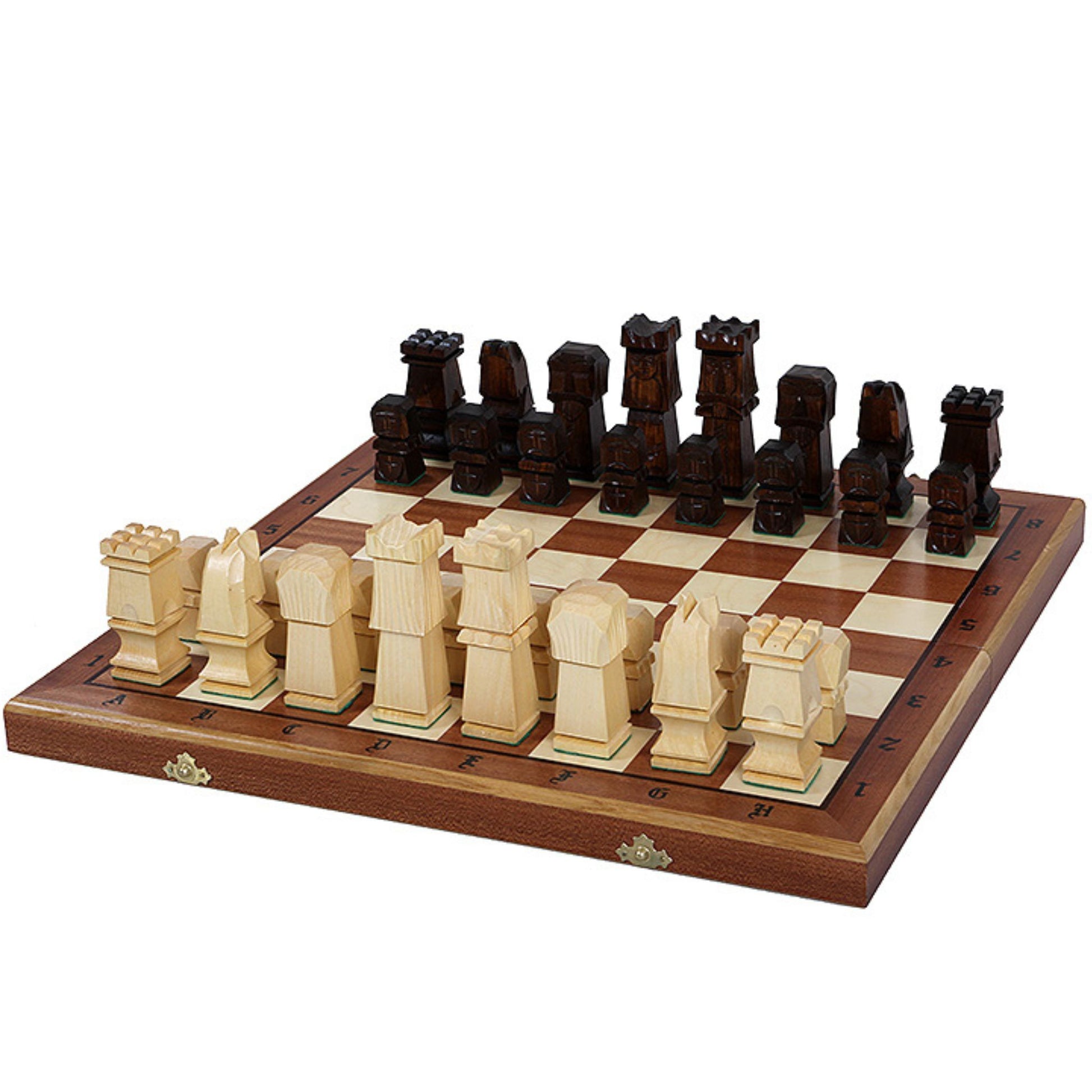 Le MONOLITH est un jeu d’échecs au caractère unique. Entièrement façonnées à la main en bois de tilleul, ses pièces évoquent des blocs de bois massifs au style minimaliste. L’ensemble est accompagné d’un superbe échiquier pliant marqueté en acajou et sycomore, doté d’un plateau intérieur avec fentes parfaitement adaptées aux pièces cubiques.